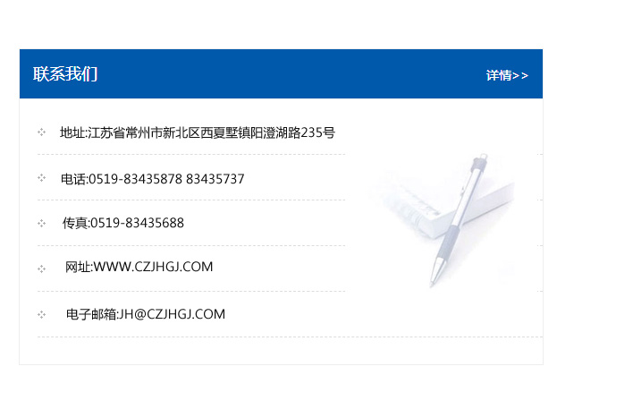 傳真:0519-83435688    郵編:213135    網址:WWW.czjhgj_com.lpblogs.com    電子郵箱:JH@czjhgj_com.lpblogs.com